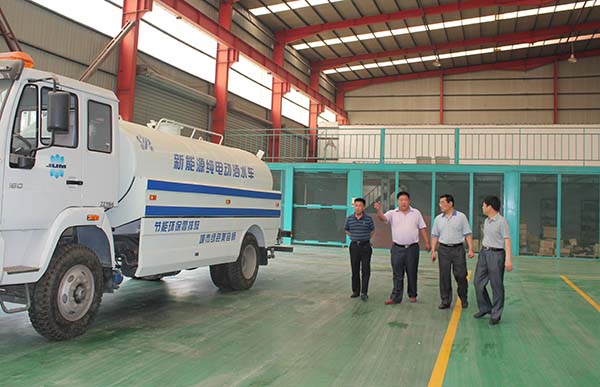 孫國棟一行到車間先后察看了新能源汽車和隨車起重運輸車等新產(chǎn)品,公司董事長胡寶明、副總經(jīng)崔光友就公司生產(chǎn)經(jīng)營等情況作了詳細介紹。